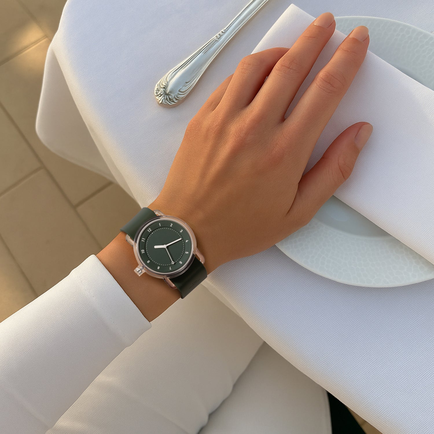 The TR90 material is characterized by its lightweight, toughness, safety, and non-toxicity. With its high transparency, each watch appears transparent, flawless, exquisite, and elegant in appearance.