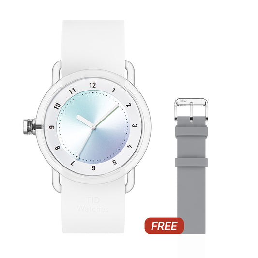 TID No.3 TR90 38mm White / Ocean Blue Silicone Strap / Transparent Buckle