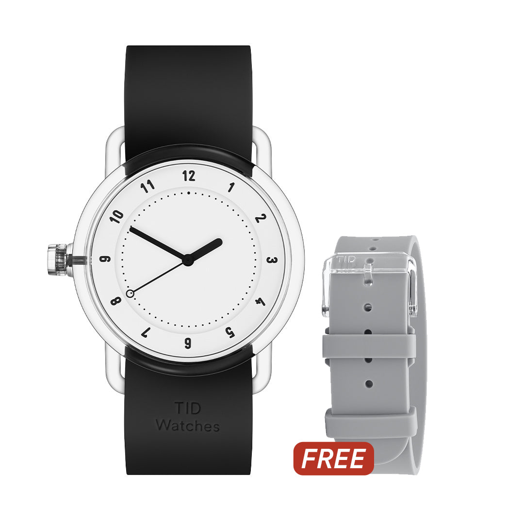 TID No.3 TR90 38mm White / Black Silicone Strap / Transparent Buckle