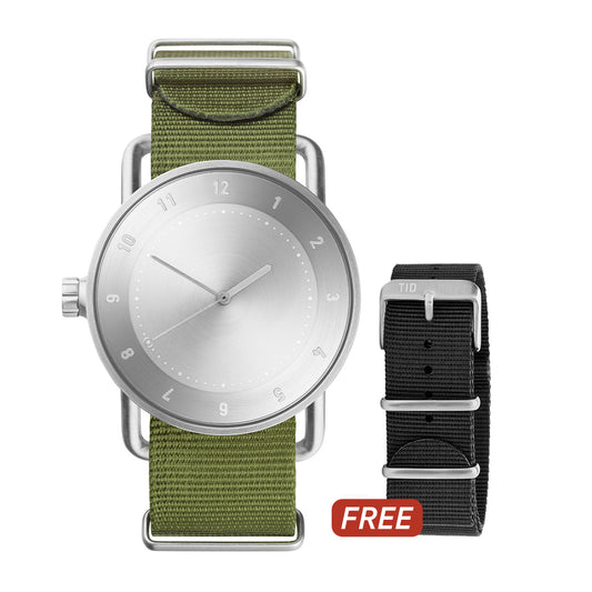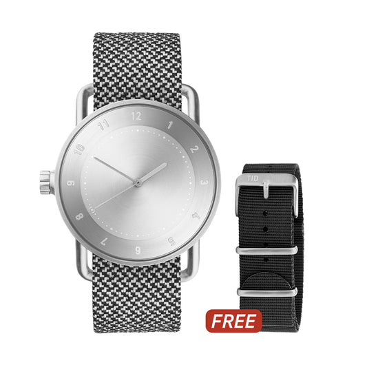 The stylish No.2 watch continues the design trajectory set out by our No.1 watch but with refined materials and details. The No.2 has a monochromatic solid brushed steel case, face, and hands. Featuring a domed sapphire glass, 10 ATM waterproofness, and a Swiss made movement. This is a really elegant and classy watch that will go with all types of styles. This watch goes with all of TID´s wristbands so that you can customize your style.
