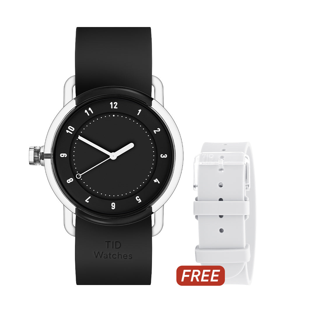 TID No.3 TR90 38mm Black / Black Silicone Strap / Transparent Buckle